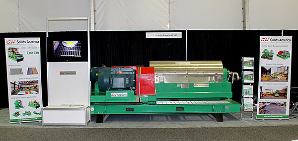 展會(huì)上很多客戶對(duì)我們的22英寸的離心機(jī)表示出了強(qiáng)烈的興趣。我們離心機(jī)的轉(zhuǎn)鼓主要部件由2205雙相不銹鋼離心澆鑄而成,其他部件由316L不銹鋼制作而成。轉(zhuǎn)鼓里的螺旋推進(jìn)器鑲嵌了超過(guò)4mm的耐磨合金片,能夠有效提高使用壽命。為了滿足加拿大市場(chǎng)所要求的CSA標(biāo)準(zhǔn),我們展會(huì)離心機(jī)配備了符合CSA防爆標(biāo)準(zhǔn)的電機(jī)(125HP和50HP)以及變頻控制柜。從技術(shù)規(guī)格上來(lái)說(shuō),冠能的GNLW553-VFD離心機(jī)與市場(chǎng)上使用廣的Alfa Laval Lynx 40相當(dāng),并且已經(jīng)在石油天然氣鉆井固控系統(tǒng)、鉆井廢棄物處理以及隧道盾構(gòu)和淤泥處理等行業(yè)得到了廣泛的應(yīng)用。