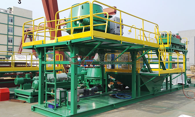 這個中石化項目打包配置了一整套水基泥漿廢漿處理系統(tǒng),包括鉆屑甩干機(jī),高G干燥篩和變頻離心機(jī)。廢棄鉆井泥漿 先輸送到鉆屑甩干機(jī)或高G干燥篩從而得到干燥后的鉆屑,變頻離心機(jī)將處理余下鉆井液,并將處理好的清潔的鉆井液返回到泥漿罐。