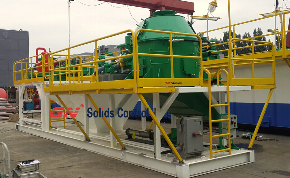 冠能150GPM泥漿系統(tǒng)配置如下 1、1臺GNZS703D雙層振動篩上安裝了3個4寸除泥旋流器,通過GNZS703D雙層篩可以把粗砂除去,然后通過除泥旋流器把20um左右以上的顆粒在分離除去, 2、2臺GNSB4X3-12J的砂泵安裝在泥漿罐斜倉上,1臺用于給除泥器供漿,另外1臺作為混漿泵使用。 3、4米長的泥漿罐,非常緊湊的設(shè)計跟合理的布局,對于狹小的鉆井空間非常適宜。