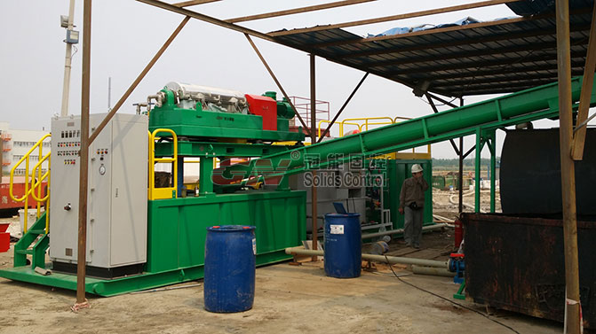 冠能離心機通過化學(xué)絮凝處理中海油油基污泥現(xiàn)場視頻